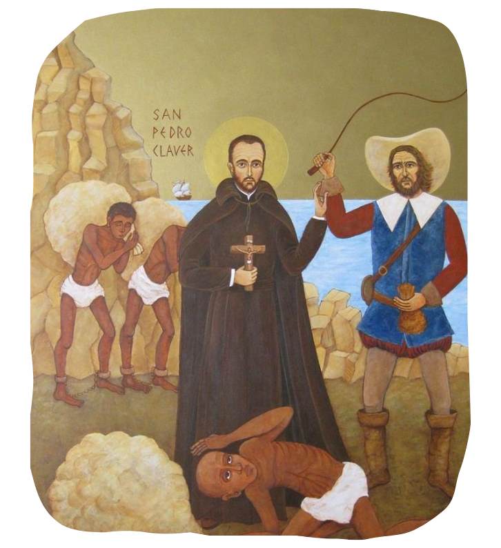 San Pedro Claver (1580/81–1654) fue un jesuita español que entregó su vida a aliviar el sufrimiento de los africanos esclavizados que llegaban al puerto de Cartagena de Indias. Subía a los barcos con medicinas, alimentos y consuelo, aprendía lo básico de sus lenguas y permanecía con ellos cuando todos se iban. Por esa entrega, la tradición lo llama “apóstol de los esclavos”; murió en Cartagena y, con el tiempo, su testimonio se volvió faro para la conciencia cristiana.